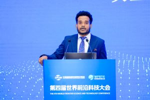 来自埃塞俄比亚联帮共和国的驻华大使馆代表梅斯芬詹布斯在会中作为一带一路国家分尊中国前沿科技为其国家发展所带来的科技推动和民生福祉!充分表达了中国前沿科技为世界人民带来的合平与繁荣。